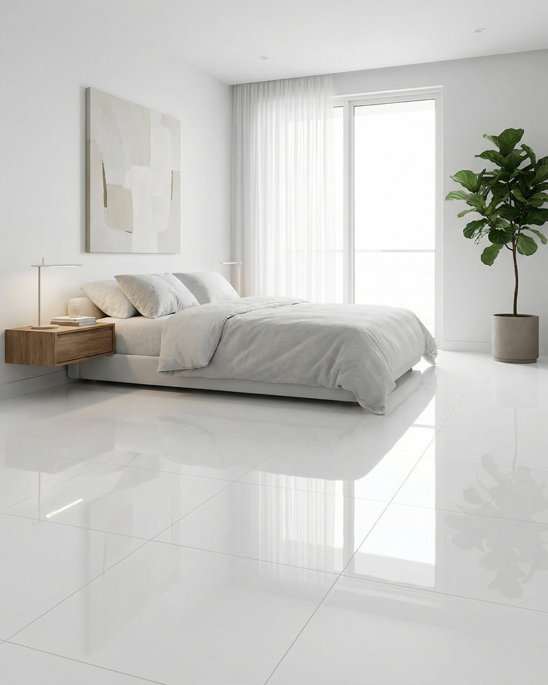 Piso porcelanato Paris en blanco con acabado alto brillo que transforma cualquier espacio con elegancia y luminosidad. Su superficie brillante refleja la luz, ampliando visualmente los ambientes y creando una atmósfera sofisticada.